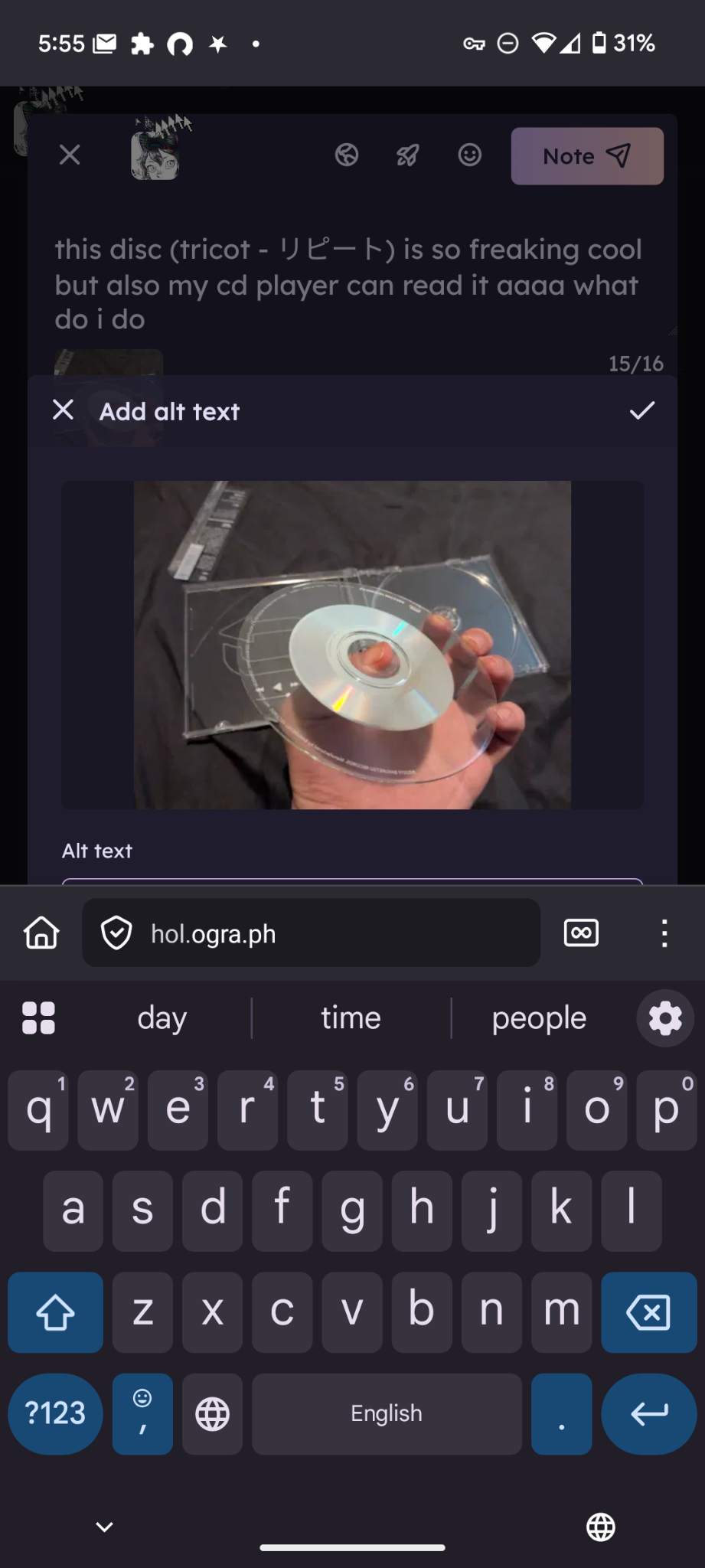 its ironic that the alt-text modal on sharkey (and probably other *keys?) has horrible accessibility on mobilei can't scroll down so i just have to type everything without looking at the result